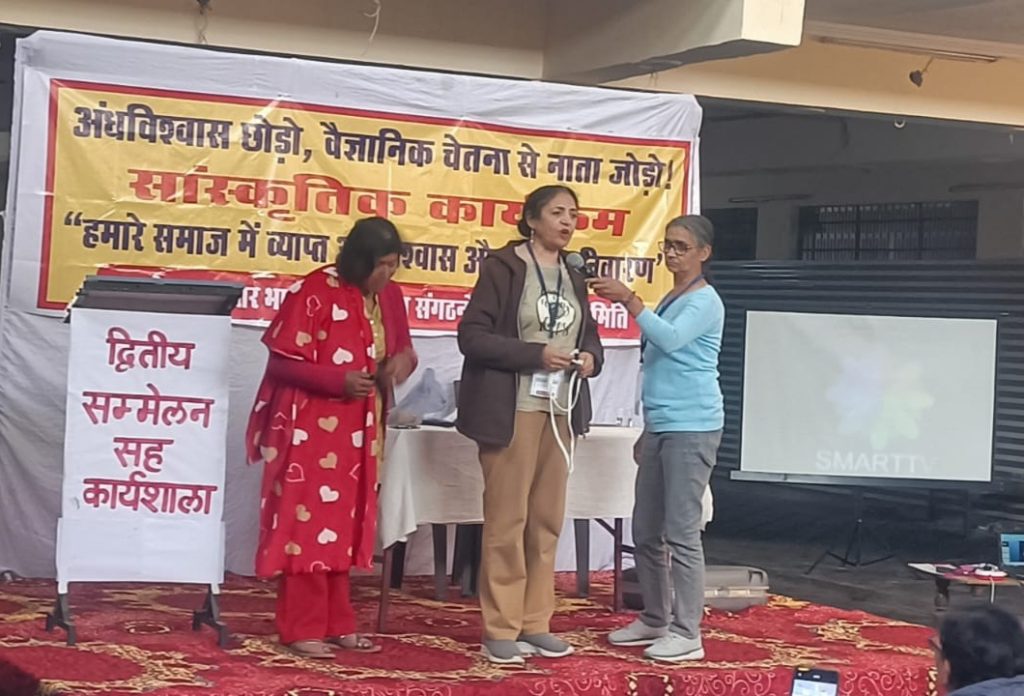 सम्मेलन के दूसरे दिन 22 फरवरी की शाम विज्ञान और अंधविश्वास विषय पर एक सांस्कृतिक एवं प्रदर्शनात्मक कार्यक्रम आयोजित किया गया। पंजाब से आए रामकुमार ने तथाकथित चमत्कारों का वैज्ञानिक तरीके से प्रदर्शन करते हुए बताया कि हवा से सोने की चेन निकालना, त्रिशूल को जीभ से आर-पार करना जैसे करतब केवल हाथ की सफाई और वैज्ञानिक तकनीकों का परिणाम होते हैं। उन्होंने स्वयंभू चमत्कारी बाबाओं को खुली चुनौती देते हुए कहा कि जेब में रखे नोट का नंबर बताना, हवा से वस्तु उत्पन्न करना, बिना जले आग पर चलना या पानी पर चलना जैसी 23 शर्तों में से कोई एक भी सिद्ध करने पर पांच लाख रुपये का इनाम दिया जाएगा।
