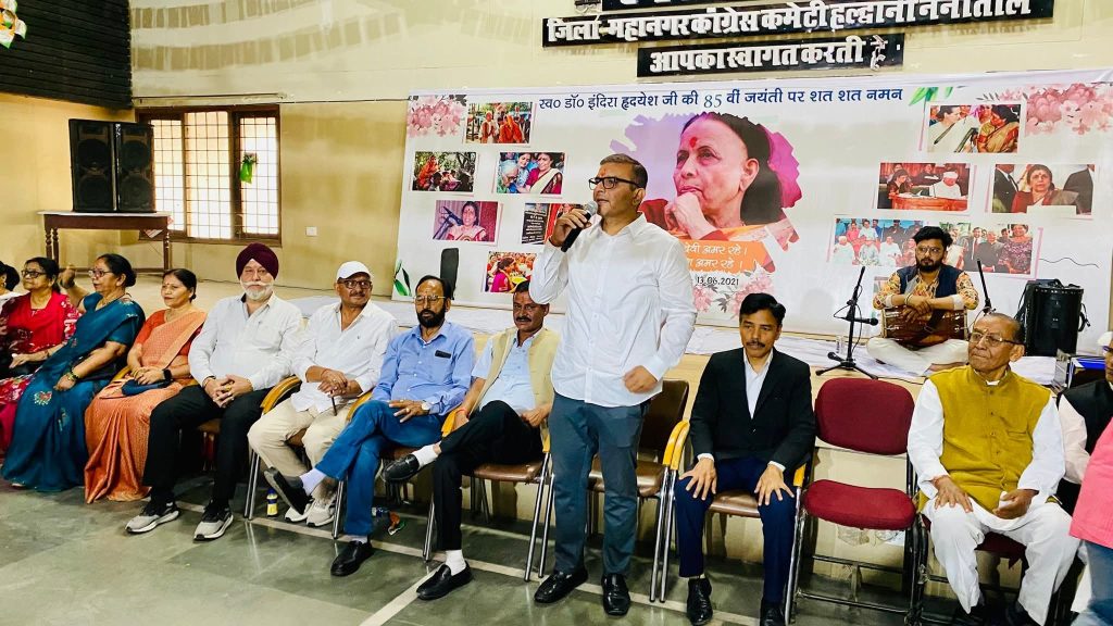 नैनीताल/हल्द्वानी। हिंदी न्यूज़ उत्तराखंड की लोकप्रिय जननेता एवं “विकास की देवी” के रूप में विख्यात स्वर्गीय डॉ. श्रीमती इंदिरा हृदयेश जी की 85वीं जयंती के अवसर पर हल्द्वानी स्थित स्वराज आश्रम में भव्य श्रद्धांजलि सभा एवं भजन संध्या का आयोजन किया गया। कार्यक्रम में बड़ी संख्या में जनप्रतिनिधि, कांग्रेस कार्यकर्ता, सामाजिक संगठनों के सदस्य एवं आमजन मौजूद रहे।